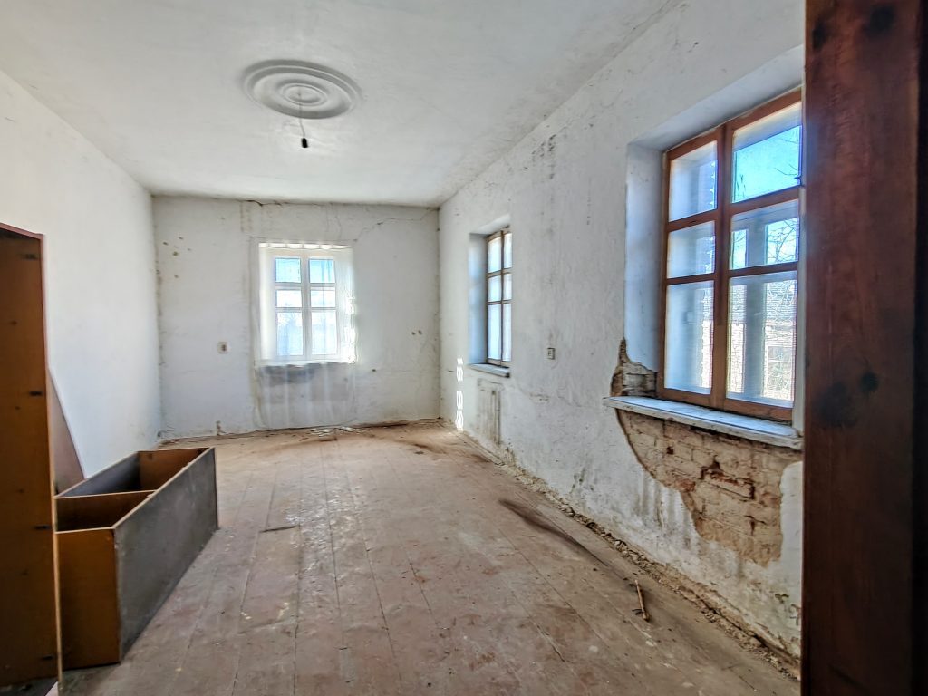 Загальна площа будинку – 176,6 м кв. Стіни груби, складені з старовинної цегли, кімнати дуже великі, світлі, з вікон відкриваються мальовничі краєвиди.