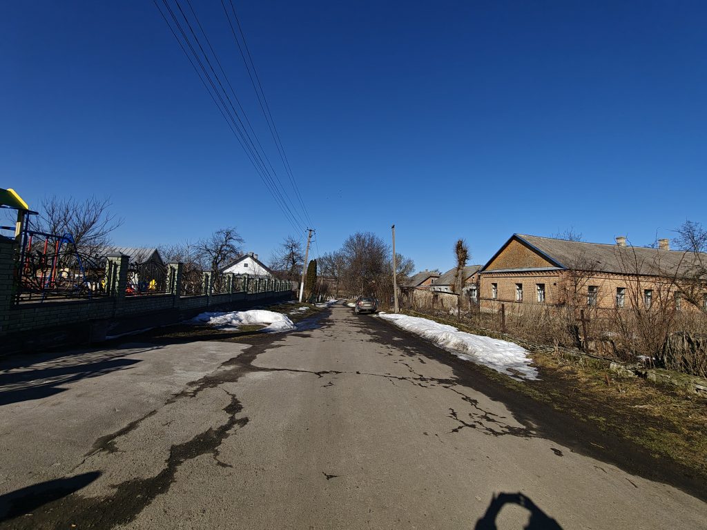 Дуже мальовнича локація! Майже кінець вулиці, навколо зелені поля і луки, куди не долинає шум траси Київ-Чоп (хоч її видно від будинку), разом з тим – хороший заїзд, вулиця на 70% асфальтована, поруч початкова школа.